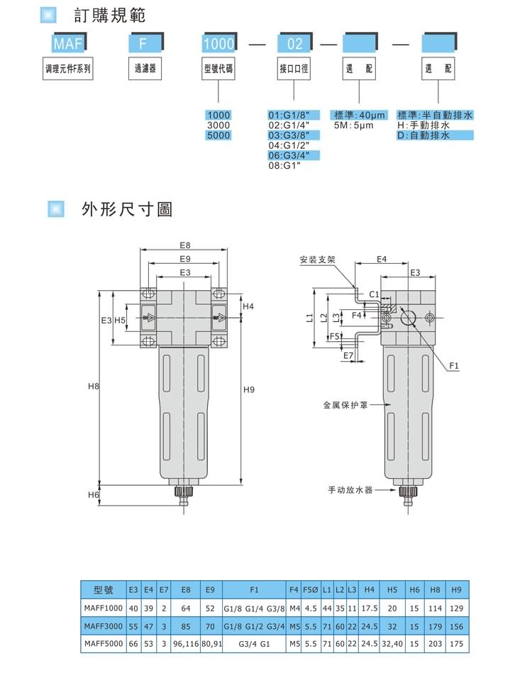 1.分水過濾器能過濾空氣中的液態(tài)油,冷凝水及雜質(zhì),對于特殊應用場合,可更換5μM,40μM的過濾精度濾芯。