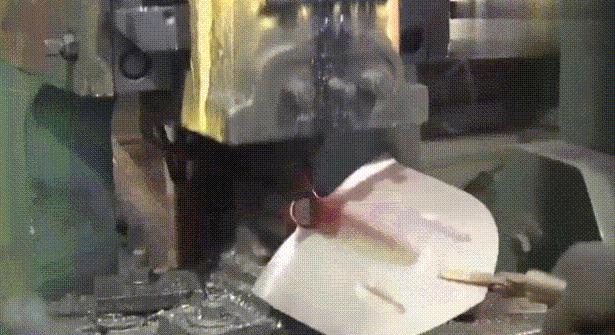 4、成型模對燒紅的胚料進行成型,成型完成后進入下道工序卷包邊,這時候就需要用鋼板機械沖床趁熱打鐵